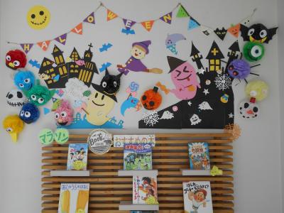 図書ボランティアのみなさんが図書館をハロウィン仕様にしてくださいました。