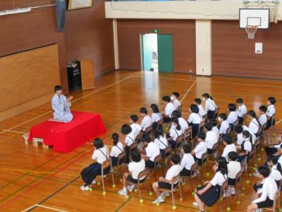 10月11日 月亭方気さんにお越しいただき、6年生を対象とした「おきらくご」が行われました。