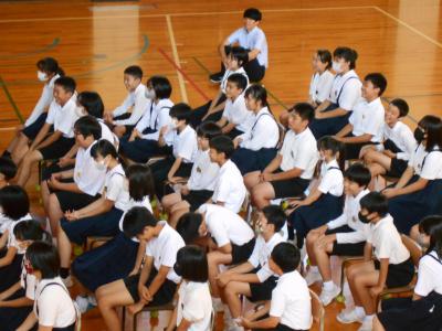 社会を明るくする運動標語コンテスト、MOA美術館児童作品展、リサイクル工作コンクール、図書館を使った調べる学習コンクール、読書感想文コンクール、郡市書写作品展、郡市図画作品展、校内マラソン大会など、たくさんの表彰がありました。