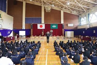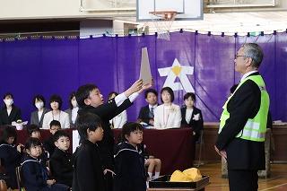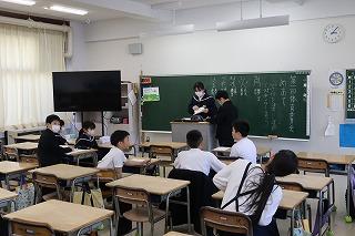 6年の代表児童2名が歓迎の言葉を伝えます。