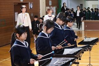 5年生の合奏「茶色のこびん」で1年生の入場です。