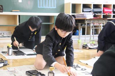 7日(火)に書初め大会がありました。新年初めの気持ちを筆にこめて一生懸命に書く姿が見られました。