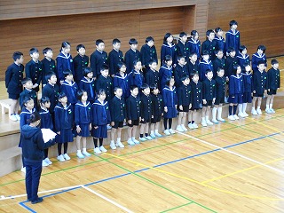 朝の歌! 投稿日時 : 2019/02/18 教頭 木曜日以外の毎日、8時10分より、各クラスで今月の歌を歌っています。朝はまだ、元気がない児童もいますが、今月の歌を歌うことによって、元気もでて頑張る気持ちになるようです。日中は天気が良く気温も高かったのですが、朝は寒かったです。寒い中、1年生は元気よく歌っていました。1年1組のみなさん1年2組のみなさん