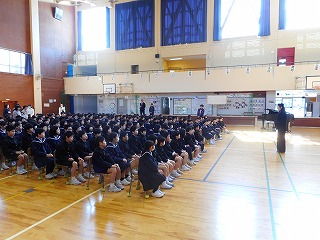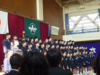 在校生で卒業式練習をしました! 投稿日時 : 2019/03/08 教頭 3限目に、1~5年生で卒業式練習をしました。はじめに、座り方、起立・礼のしかたなどを確認しました。次に、別れの言葉を在校生で合わせてみました。どの学年も精いっぱい声を出していました。最後に、歌の練習をしました。儀式にふさわしい態度でがんばって練習しました。