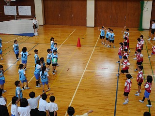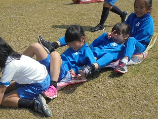 サッカー型ゲーム 投稿日時 : 2019/03/01 教頭 4年生のみなさんが体育でサッカー型のゲームをしていました。試合の前にチームでホワイトボードを使って作戦を練っていました。しっかりポジションなどを工夫して試合をしていました。