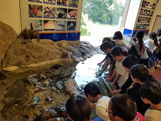 6年宿泊体験学習3日目 投稿日時 : 2019/05/24 教頭 今日が合宿最終日でした。今日の活動は1日目にも行った海洋ふれあいセンターで、館内の展示物をみたり、磯を散策したりしました。3日間ともとてもいい天気で、予定していた活動が全てできました。3日間の体験をこれからの学校生活の中で生かしていきたいです。朝の集いの様子海洋ふれあいセンターの様子