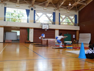 器械運動交歓会 投稿日時 : 2019/06/05 高学年 本日、中条小学校で器械運動交歓会が行われました。4年生の子どもたちはもっている力を出し切ってがんばっていました。おうちでも褒めてあげてください。