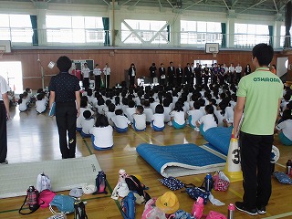 不審者対応避難訓練 投稿日時 : 2019/05/28 教頭 2限目に不審者対応の避難訓練がありました。放送などの指示をしっかりと聞き、落ち着いて行動するように取り組みました。不審者に対応する訓練体育館で安全確認している様子