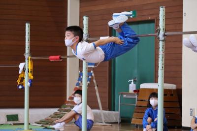 町器械運動交歓会を前に、5月30日(月)に校内発表会が行われ、4年生が日々の練習の成果を発表しました。