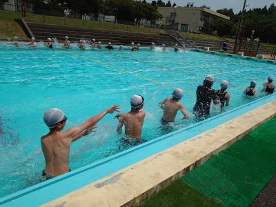 6月20日(月)に、6年生と一緒にプール開きをしました。