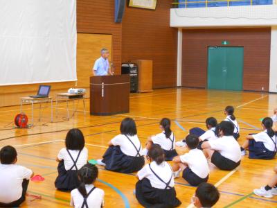 体育館の4~6年生は暑い中でしたが、静かに聞いていてとても素晴らしかったです。