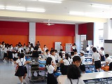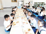 なかよしランチルーム給食 投稿日時 : 2018/07/09 教頭 今日から3日間、3年生と4年生のなかよしランチルーム給食があります。なかよしランチルーム給食とは、異学年のなかよしグループの友達とランチルームで給食を食べることです。いつもと違った雰囲気で楽しそうに食べていました。昼休みには1年生のドッジボール大会がありました。3年生と4年生のみなさんです。3年生と4年生が向かい合って食べています。今日は1年生のドッジボール大会がありました。