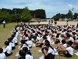 シェイクアウトいしかわ 投稿日時 : 2018/07/11 教頭 11時頃から、地震防災訓練としてシェイクアウト訓練が行われました。シェイクアウトとは、「地震をぶっとばせ」という意味あいですが、日本語では、「一斉防災訓練」と訳されています。この訓練は、地震の被害から自分自身を守るための「しゃがむ」「かくれる」「じっとする」という「3つの安全行動」1分程度、一斉に行うものです。今回は1分程度、机の下などでじっとした後、運動場へ避難しました。1年1組のみなさんは、5限目の道徳の時間に「生き物」について考えました。みなさん、優しい心で接していることがわかりました。机の下で安全行動をとっています。運動場に避難しました。生き物について考えました。