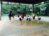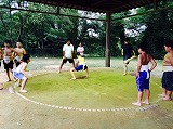 とても暑い中、子どもたちはすり足やぶつかり稽古を行いました。