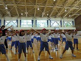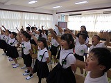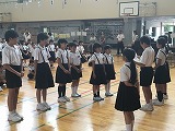 学年登校日に、5・6年生合同で町歌の練習を行いました。昨年も演技した6年生のお手本を見たり、なかよしグループの6年生に教えてもらったりして、少しずつ動きを覚えていきました。
