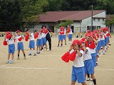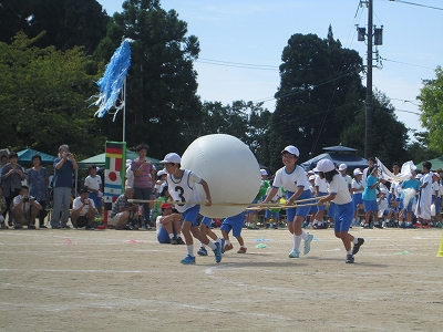 児童会種目『大玉ワッショイ』では1年生から6年生までが声を掛け合って