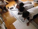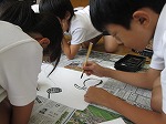 そのあとは、自分が擬人化したいものを選び、班で筆と墨を使って絵巻物を描きました。