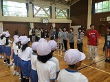ドッチビーでわきあいあい 投稿日時 : 2016/05/30 oosire 学校公開へのご参加本当にありがとうございました。三年生は親子活動でドッチビーを行いました。ドッチビーは柔らかな素材で、直径30cmほどの大きさで、ブーメランのように投げる道具です。保護者対子どもの戦いは大変盛り上がり、終わった後には子どもも保護者もそれぞれいい笑顔をしていました。