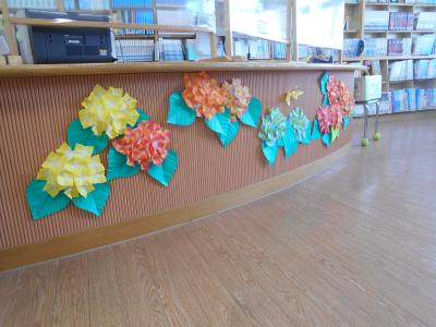 初夏の飾りで彩られ、涼しげな図書館になりました。