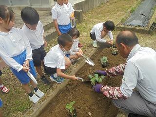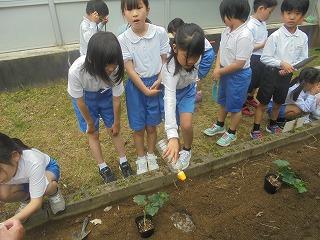 みんな「大きくなあれ!」と言いながら上手に植えることができました。