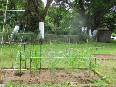特別支援4学級で育てているとうもろこし、きゅうりがぐんぐん成長しています。