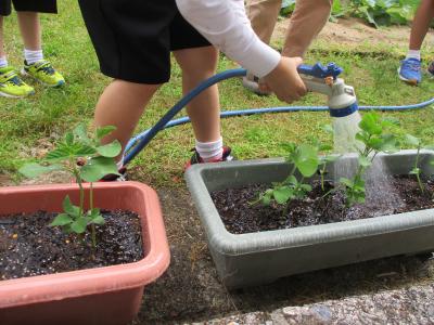 子ども達は曜日で当番を決めて、水やりを頑張っています。