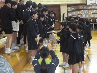 平成28年度6年生を送る会 投稿日時 : 2017/02/27 校長 6年生を送る会大成功! 2月24日(金)に6年生を送る会が開かれました。今年は『前を向いて はばたけ未来へ』をテーマに、準備・練習・発表に取り組んできました。どの学年も、6年生への感謝の気持ちがこもった素晴らしい発表ばかりでした。特に5年生は、準備から当日の動きに至るまで、とてもがんばってくれました。最高学年として、4月から活躍してくれることが期待できる働きぶりでした。 3年「もりの色をそめるのはだれ?」 1年「おとどけもの」 2年「太白山のなかまたち」 4年「プラタナスの木」 5年「太白オリンピック」 6年「笑顔に会える・YELL] 在校生からのプレゼント アーチをくぐって退場