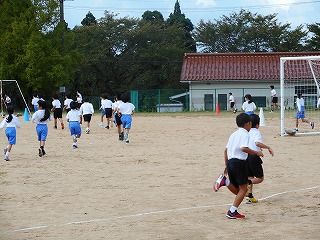 かけあしがんばり運動スタート! 投稿日時 : 2018/10/02 教頭 昨日は天気がよくなく中止になり、今日からかけあしがんばり運動がスタートしました。1日目とあって、みんなたくさん走りました。めあてをもって、2週間のがんばり運動をがんばって、マラソン大会でもベストをつくします。