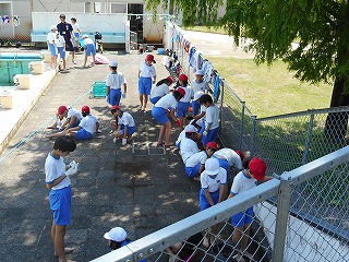 プール掃除をしました! 投稿日時 : 2019/06/11 教頭 午後から、5,6年生のみなさんにプール掃除をしてもらいました。朝は雨でしたが、午後からは天気が良くなり、プール掃除をすることができました。5,6年生のみなさん、ありがとうございました!