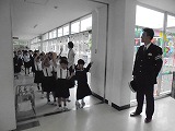 安全教室 投稿日時 : 2018/05/18 低学年 1年生が安全に道路を渡ることができるように、警察の方やボランティアさんをお呼びして、安全教室を行いました。 DVDを見て確認をした後、校内や体育館につくられたコースを実際に歩いてみました。「一旦止まって、右を見て、左を見て、もう一度右を見て、手を挙げて、渡りましょう。」毎日安全に気をつけることができるように、お家の方からも声をかけてあげてください。