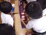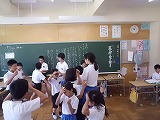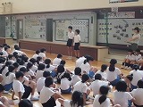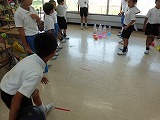 太白フェス2018! 投稿日時 : 2018/07/19 教頭 2,3限目に「太白フェス2018」がありました。これは、なかよしグループでいろいろゲームやミッションをして楽しむものです。それぞれのグループを2つにわけ、前半が店番、後半がゲームをするチームと、前半がゲーム、後半が店番をするチームに分かれました。どのゲームも工夫されていて楽しいものばかりでした。ゲームには、「的あて」「ボーリング」「8の字」「ジェスチャーゲーム」「宝探し」などがありました。開会式の様子8の字・ボールわたし何本たおれるかな?中に何が入っているかな?高得点をねらって当てよう!体育館では4つのゲームが行われました