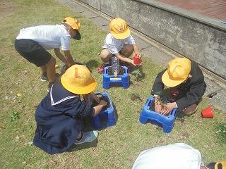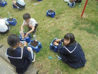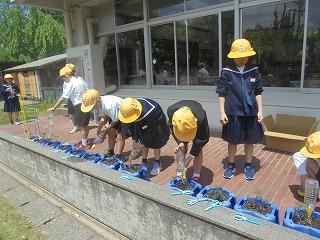 生活科「大きくそだて わたしの野さい」の授業でミニトマトの苗を植えました。