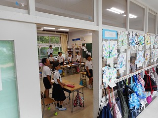世界中がキラキラ! 投稿日時 : 2019/07/09 教頭 朝学習は、今月の歌を歌ってからスタートします。学習の始まりは、元気に歌を歌って始まります。今月の歌は、自然と「世界中がキラキラ」と口ずさみたくなるような歌です。暑さに負けず、元気に歌っています。