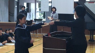 児童会・終業式 投稿日時 : 2015/12/25 oosire 長い二学期が終わりました。これからは冬休みになります。クリスマスや大晦日、お正月とイベントが続き、たくさんの人と出会い、たくさんのプレゼントもあるでしょう。お金の使い方やお正月の過ごし方など、お子さんとゆっくりと話してみてはいかがでしょうか。 児童集会では図書の表彰がありました。通知表には年間の読書冊数・ページ数が載っています。たくさん読めている子をたくさん認め、たくさん褒めてあげてください。 校長から後ろと前を見るという話がありました。後ろ?前?何のことでしょうか。お子さんに話を聞いてあげてください。