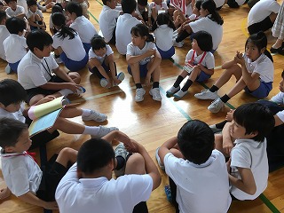 29日の太白なかよしパークに向けて、なかよしタイムで練習をしました。太白なかよしパークとは、なかよしグループを二つに分け、お店をきりもりしたり、お客さんになったりして楽しむ全校のイベントです。一人一人に役割が与えられ、子どもたちは真剣に話を聞き、なかよしパークでみんなを楽しませようとがんばっていました。