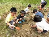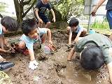 泥遊び 投稿日時 : 2017/06/16 低学年 1年1組では、生活科の学習で泥遊びをしました。穴を掘って水を貯める子、川を作って水を流す子、山を作ってトンネルを掘る子、どろどろの感触を楽しむ子、いろいろな遊び方をしていました。 保護者の皆様、着替えのご用意やお洗濯等のご協力ありがとうございます。これからまたプールの学習が始まりますので、またお願いいたします。