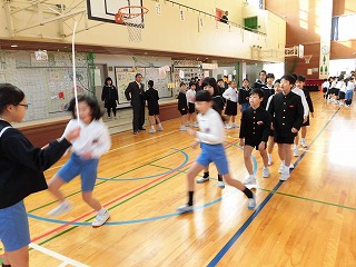 休み時間 投稿日時 : 2018/01/31 教頭 寒い日が続きますが、子どもたちは休み時間になると教室を飛び出して元気に遊んでいます。中学年の子どもたちは、体育館が使えたので元気のドッジボールをして遊んでいます。男女関係なく遊んでいる姿がとても印象的でした。他に動物委員会の子どもたちが考えてくれたイベントに参加している子どもたちもたくさんいました(^^)