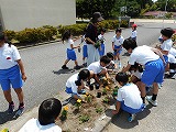 昼休みに自然環境委員会の花の苗植え体験がありました。