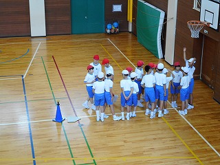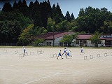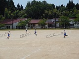 5年生の体育は、ハードル走です。跳び方を工夫して、タイムが縮まるようにがんばって練習していました。