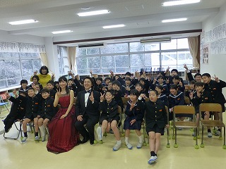 プロの音楽家による特別授業 投稿日時 : 2019/02/08 中学年 カテゴリ:今日の出来事 世界を舞台にご活躍されている声楽家でバリトン歌手の 原田ゆうやさん、ピアニストの宮本えり子さんが太白台小学校を訪れ、 子供たちに特別授業を行ってくださいました。 今日は3年生の授業。子供たちに馴染みのある「赤とんぼ」から歌曲「魔王」まで バラエティに富む選曲で、素晴らしい歌声とピアノ演奏を聞かせていただきまし た。子供たちも、プロの声楽家の歌声の響きに圧倒された様子でした。本格的な音楽に触れる素晴らしい機会をありがとうございました。
