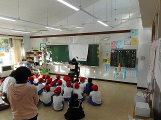 子ども郷土史講座(4年生) 投稿日時 : 2019/11/19 中学年 河合谷の禁酒の物語を紙芝居で紹介して頂きました。子どもたちは真剣に紙芝居を聞いて、メモをしていました。ぜひ、おうちでどんな物語だったのかお話を聞いてあげてください。