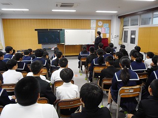 中学校の先生をお招きして 投稿日時 : 2019/11/25 教頭 6年生が総合の時間に、中学校の先生をお招きして、中学校についていろいろなことを学びました。どんな行事があるのか、部活動ではどのようなことをしているかなど、たくさんのことを学びました。あともう少しで中学校に進学します。これからも中学校での生活を学んでいきます。