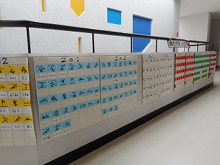 太白オリンピック 投稿日時 : 2019/11/26 教頭 図書の本をたくさん借りてもらうために、図書委員会のみなさんは太白オリンピックの活動をしています。廊下にオリンピック種目の各マークが学年ごとに掲示してあります。そのマークがどんな競技(種目)なのか当てるものです。