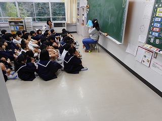 読み聞かせ、ありがとうございました! 投稿日時 : 2019/11/28 教頭 図書ボランティアのみなさま、読み聞かせどうもありがとうございました。今日は、5年生、6年生にも読み聞かせをしていただきました。どの学年も静かに読み聞かせを聞いていました。