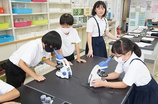 今日は、5年1組が顕微鏡を使って学習をしました。