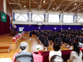 入学式では、61名の1年生のみなさんが仲間入りしました。担任の先生から名前を呼ばれると大きな声で返事をしていました。