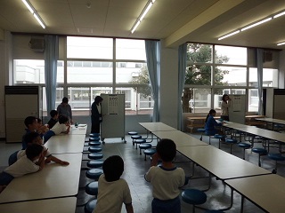 昼休み時間だけでは時間が足りないので、給食時間の12時50分から始まりました。