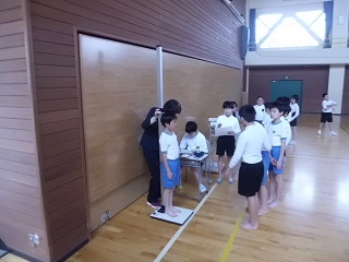 2~6年生が、小グループに分かれ、身長・体重・視力・聴力(聴力は2,3,5年生のみ)を計測しました。6年生が記録などのお世話をしました。