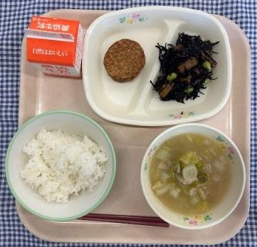 今日の給食献立は、白ごはん・魚のレモン柚庵焼き・白菜のおかか煮・すりわり汁・牛乳でした。