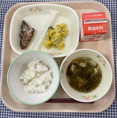 今日の給食献立は、白ごはん・魚のレモン柚庵焼き・白菜のおかか煮・すりわり汁・牛乳でした。
